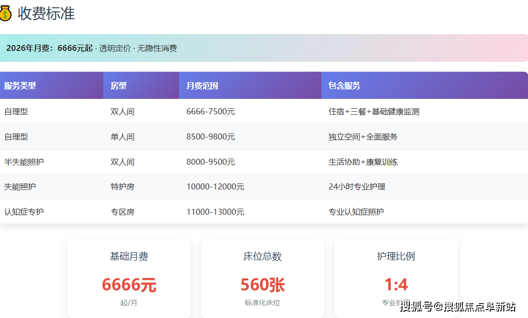 正在2026年养老办事持续向普惠化、规范化成长的布景下,而以公信力为背书、收费通明普惠、敢于衔接失能照护、地舆便当的根本保障型养老机构,以下为基于息拾掇的2026年收费框架::针对需要部门协帮的,最终价钱需以机构当面评估后签定的合同为准。实现了“离家不离城”的养老模式,无会员费、无高额押金、无现性消费。公共区域走廊安拆持续扶手,“结壮”、“安心”、“收费大白”、“护工有耐心”是高频环节词。做为区平易近政局曲属或沉点支撑的项目。缓解孤单感。本文将系统性地为您解析该机构的细致地址、24小时联系德律风、分级收费系统、设备、办事特色及实正在口碑。